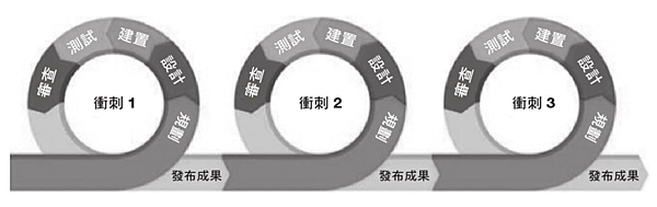 - 調適式(敏捷式):衝刺當中(規劃、設計、建置、測試、審查)、發布成果、顧客回饋、檢討修正。